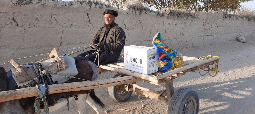 UMCOR partners with International Blue Crescent to provide humanitarian relief to displaced people living for eight months or more in informal camps, turned back from the Tajikistan border by the Taliban.