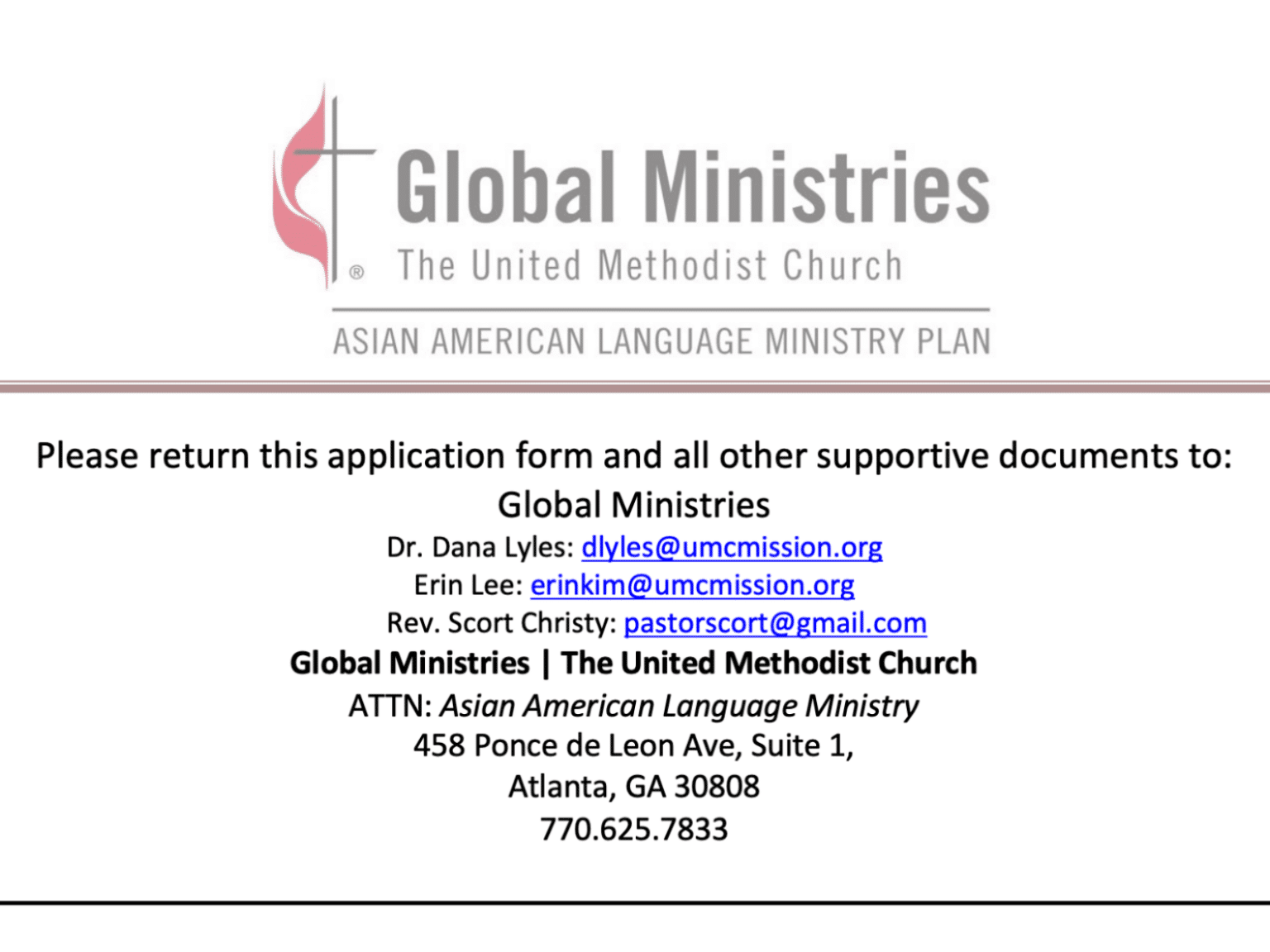 Grant application for Asian American UMC churches and groups focused on leadership, growth, language resources, or ministry with the poor.