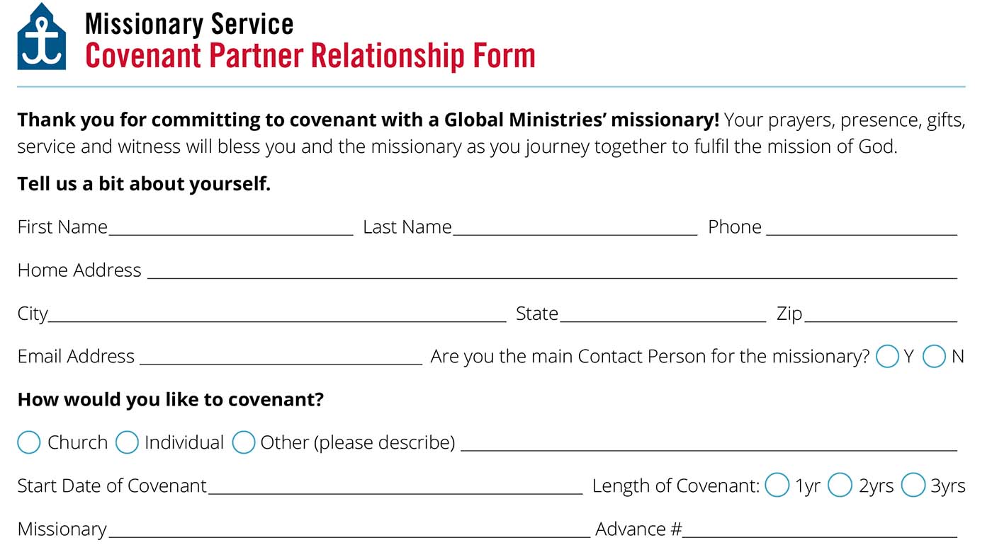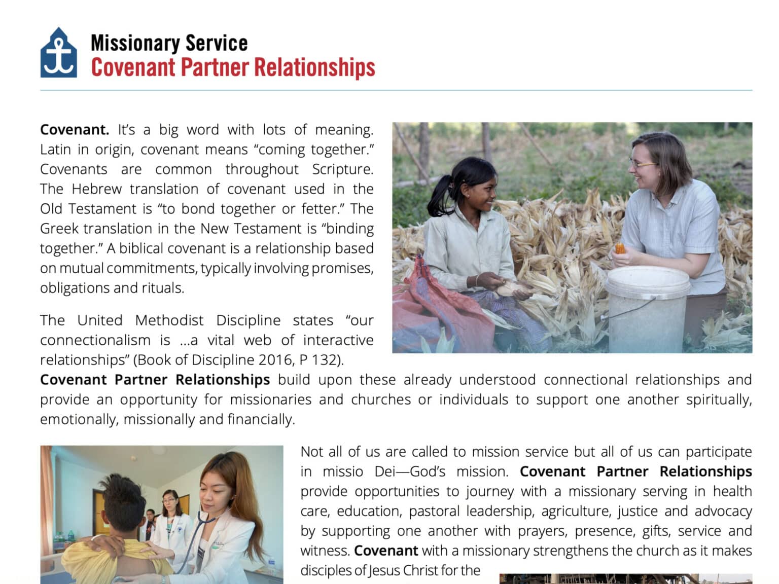 Handout that explains what it means to enter into a Covenant Partner Relationship with global missionaries.