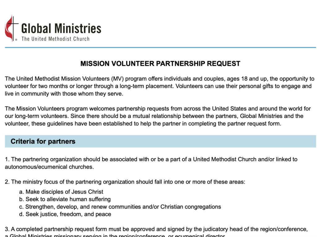 Form for groups and organizations interested in becoming a Mission Volunteer placement site.