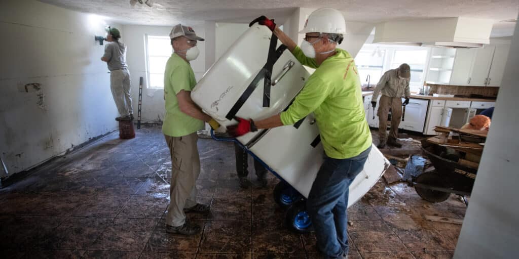 Members of a volunteer team from the North Georgia Conference clean out a home in Fort Myers, Florida, that was flooded by Hurricane Ian. (Photo: Mike DuBose, UM News)
