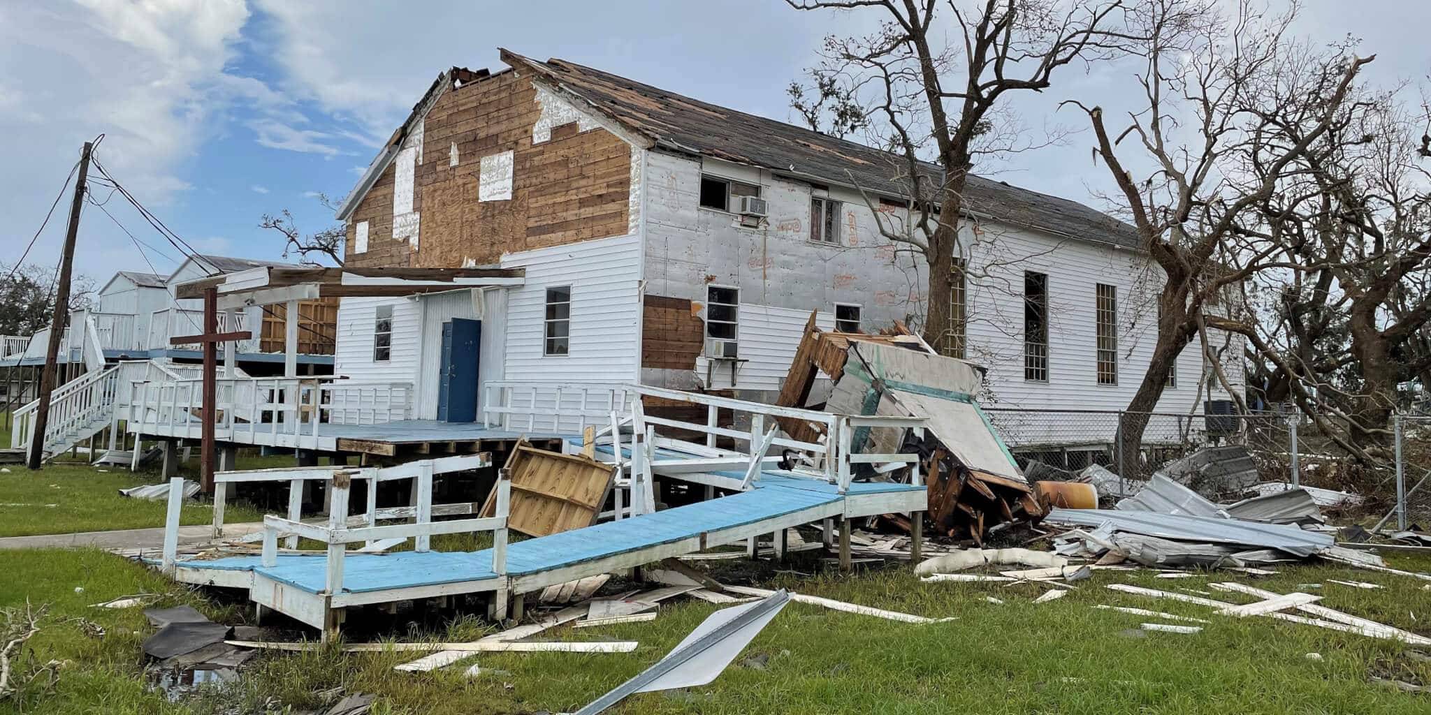 Clanton Chapel in Dulac suffered major damage, first from the hurricane and then from the soaking rains. Shingles were torn off the church’s roof and siding, the roof collapsed, and the steeple crashed down into the yard. This unique multicultural congregation, led by retired pastor, the Rev. C. Kirby Verret, includes members of the United Houma Nation along with Black, Hispanic and Vietnamese parishioners. Although they found alternate spaces to meet for worship, meetings and ministry after Hurricane Ida struck, they still aren’t back in the building.