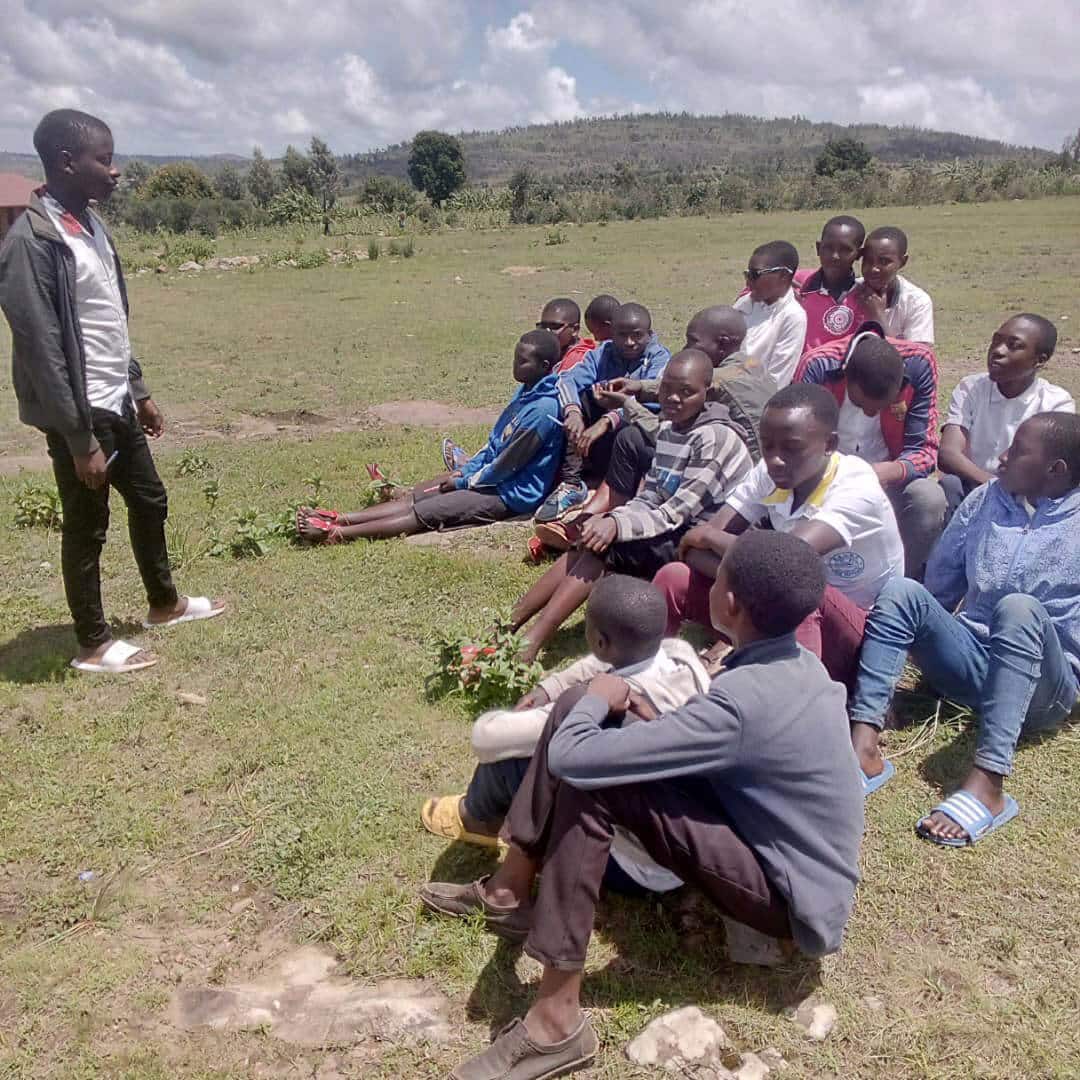 A youth member of one of the antimalaria school clubs in Burundi shares information with other children and youth about what malaria is and how to prevent it. (Photo: Courtesy of Burundi UMC Health Board)